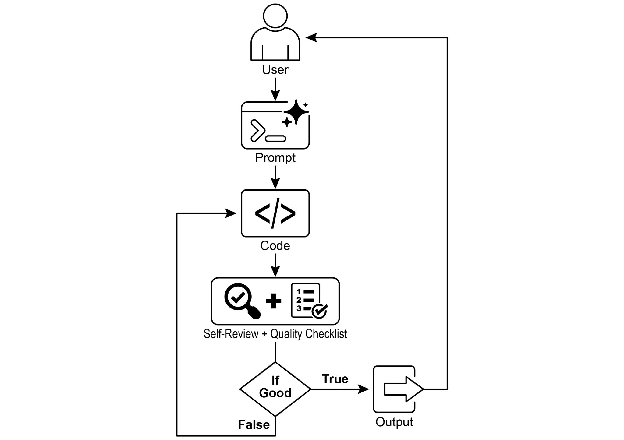 有了这个任务,AI 程序员开始工作并产生其第一个代码草稿。然而,它没有立即提交这个初始版本,而是暂停执行一个关键步骤:严格的自我审查。它仔细地将自己的创作与你提供的质量检查清单上的每一项进行比较,充当自己的质量保证检查员。在这次检查之后,它对自己的进度做出一个简单、无偏见的判断:"True"如果工作满足所有标准,或"False"如果它不足。