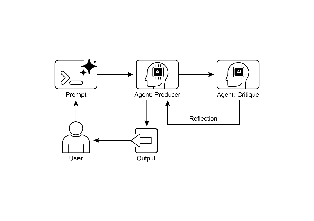 - 一个强大的实现是生产者-评审者模型,其中独立 Agent(或提示角色) 评估初始输出。这种关注点分离增强客观性,并支持更专业、结构化的反馈