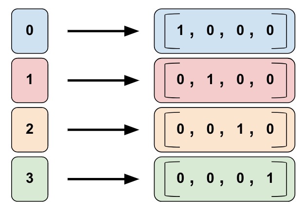 机器学习模型通常都会以简单的向量代表分类值,在向量中,1 表示某值存在,0 表示值不存在。例如,当 product_class 运动产品的集合时,一个机器学习模型通常会以 [0, 0, 1] 表示 product_class ,含义是: